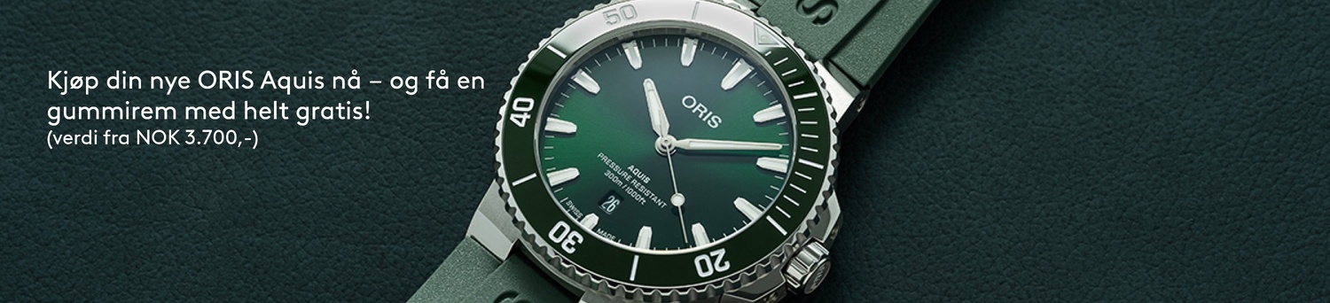 Kjøp din nye ORIS Aquis på lenke nå – og få med en original gummirem, helt gratis! Verdi fra NOK 3.700,-