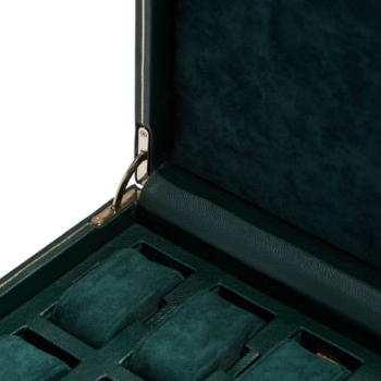 British Racing-kolleksjonen har på kort tid blitt en moderne klassiker—unik, distinkt og tidløs. Med British Racing 8 Piece Watch Box får klokkene dine en oppbevaringsløsning som kombinerer britisk eleganse med funksjonalitet i toppklasse. Denne eksklusive klokkeboksen er kledd i luksuriøs vegansk skinn, fullendt med gullfargede metalldetaljer og et karakteristisk quad-panelert lokk som gir designet en raffinert arkitektonisk dybde.