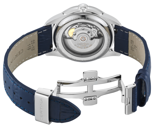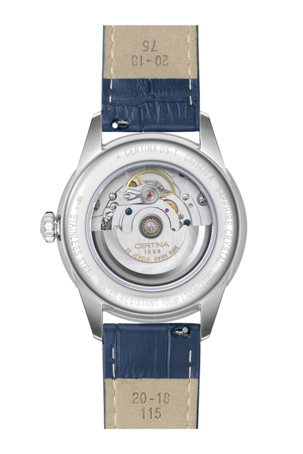Med DS-1 Day-Date er hver dag en spesiell dag: Ukedagen vises i et buet vindu klokken 12, supplert av et datovindu. Elegante dauphine-visere og buet safirglass gir klokken – med sitt høykvalitets automatiske urverk – en elegant retrofølelse.