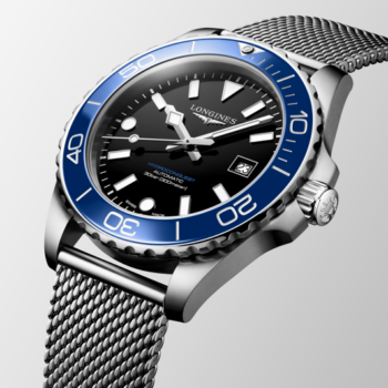 HydroConquest kombinerer moderne estetikk med dokumentert ytelse og henter inspirasjon fra maritime eventyr, samtidig som den viderefører tidløse designprinsipper. Resultatet er en sportslig klokke som beveger seg sømløst fra aktive omgivelser til elegant bruk. Denne modellen har en diameter på 41 mm og er utstyrt med det eksklusive Longines-kaliberet L888.5, et selvtrekkende mekanisk urverk med silisiumbalansefjær og innovative komponenter som gjør det opptil ti ganger mer motstandsdyktig mot magnetiske felt enn det ISO 764-standarden krever. Det gir enestående presisjon og en gangreserve på opptil 72 timer. Klokken har sort, lakkert og polert urskive, sort enveis roterende bezel med keramisk innlegg, Super-LumiNova®-behandlede indekser og visere samt markering ved klokken 12 («0»), vanntetthet opptil 30 bar (300 meter), skrukrone og skrudd baklokk. Modellen leveres med lenke i rustfritt stål, utstyrt med dobbel foldespenne med sikkerhetslås og mikrojustering.