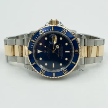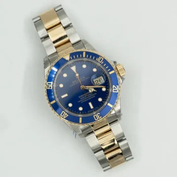 Ikonisk og tidløs Submariner fra Rolex, kjent som “Bluesy” på grunn av sin karakteristiske blå skive og bezel kombinert med stål og gull. Modellen kombinerer luksus og robusthet, og er laget for dem som ønsker en dykkerklokke med det lille ekstra, som skiller seg ut både i stil og finish.