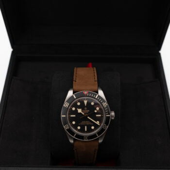 Black Bay ble lansert av Tudor i 2012 som en moderne diver med retro utseende. I starten ble den produsert med et ETA-verk, men ble etter hver oppgradert med Tudors egne in-house verk. Dette uret er av siste typen. Uret er fra 2018 og har nylig hatt full overhaling. Uret kommer med boks og papirer og er i god stand.
